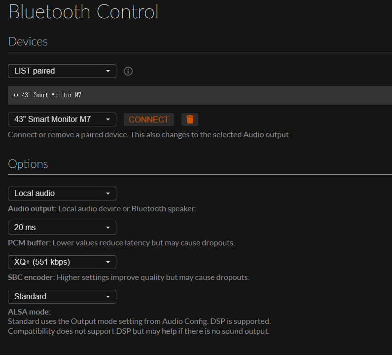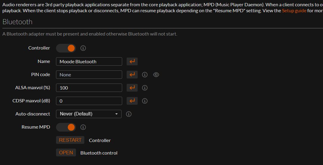 Bluetooth control "OPEN" 클릭 (Blootooth 연결 후)